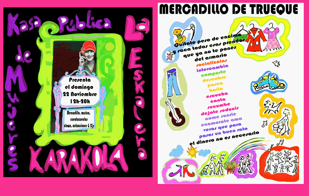 Mercadillo, música en directo, danza, performance, djs y exposiciones de fotografia (MUY INTERESANTES) y pintura de mujeres principalmente.